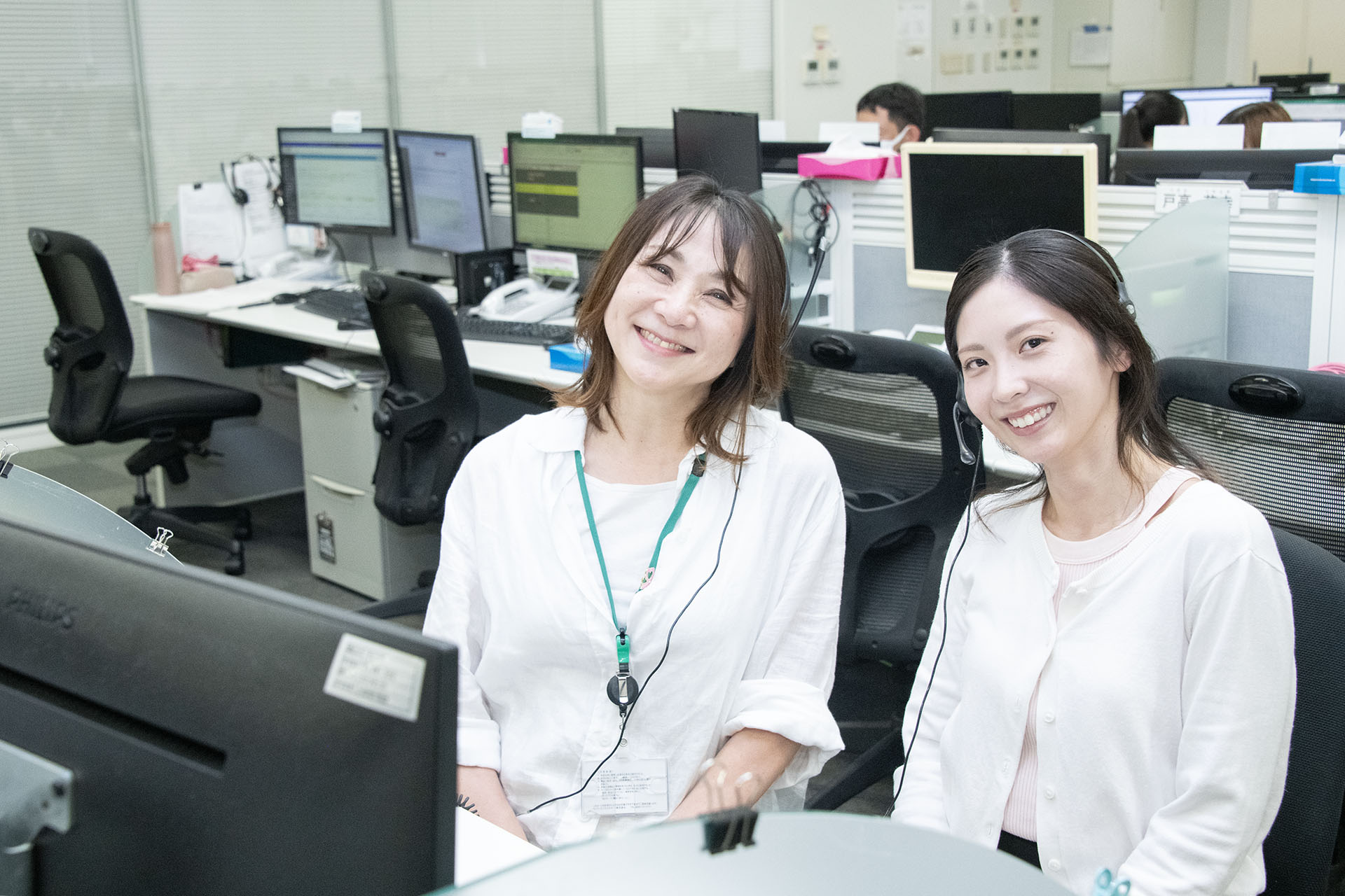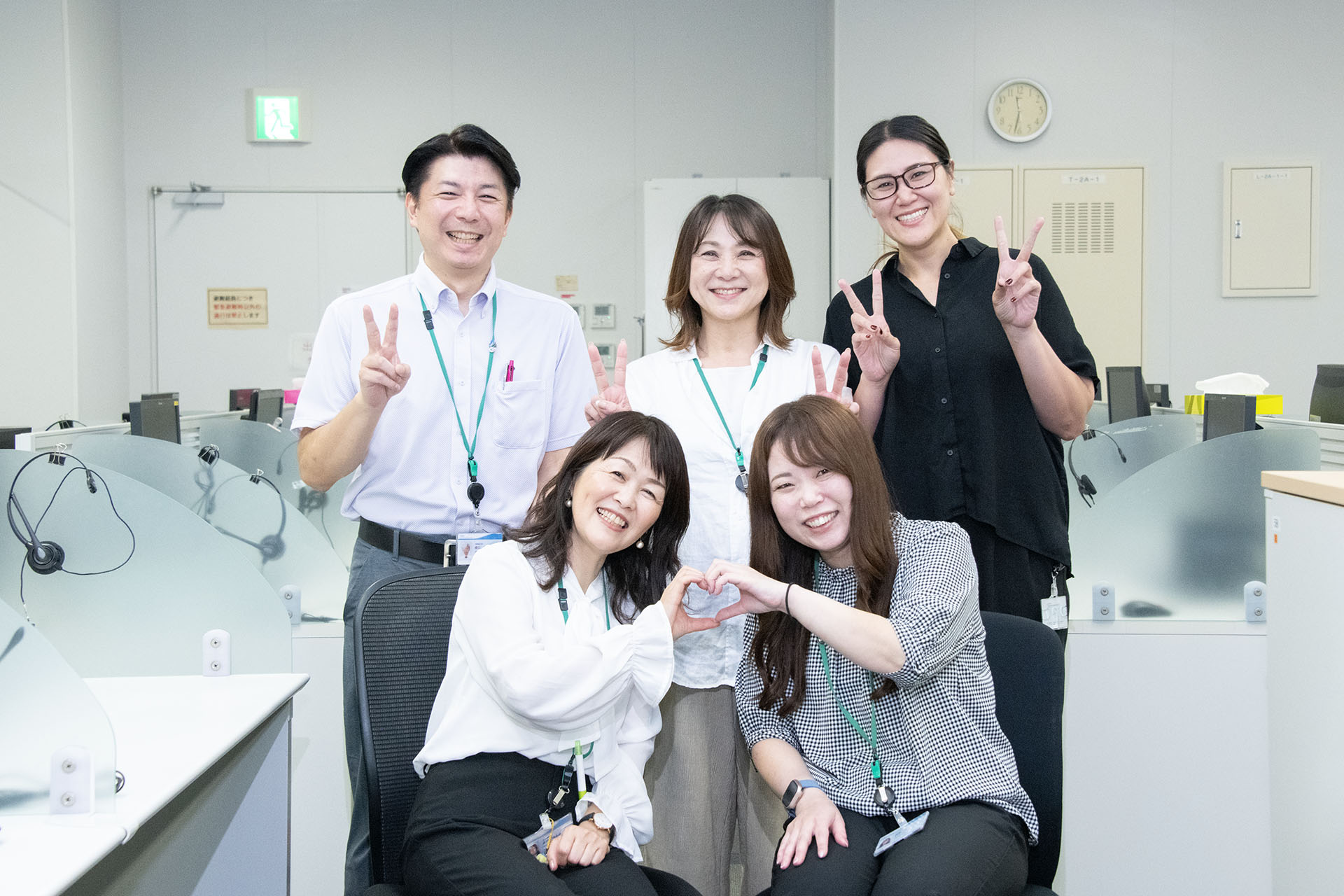 コンタクトセンター業務は、相手のお困りごとに寄り添いながら一緒に解決していく仕事。電話の向こうにいるお客さまの状況を思い描き、気持ちを汲み取る優しさや共感力が求められます。現在働く社員の中には、「対面でのコミュニケーションは少し苦手だけれど、電話なら話せる」という人もいます。まずは一歩踏み出して挑戦してみてほしいです。入社後は研修から始まり、先輩の隣で業務を見学し、次に先輩が見守る中で実際の対応を行う流れです。段階を踏んで慣れていけるため、未経験の方でも安心してスタートできます。私たち自身も立ち上げ期の大変な時期を経験してきたからこそ、次の世代にはより丁寧にサポートしていきたいと考えています。